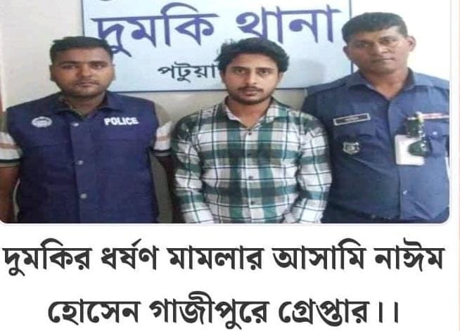 হাওলাদার।। পটুয়াখালী জেলার দুমকি উপজেলায়, থানায় দায়ের করা একটি ধর্ষণ মামলার মূল আসামি মোঃ নাঈম হোসেন খাঁনকে গাজীপুর জেলার বাসন থানা এলাকা থেকে রবিবার রাতে গ্রেপ্তার করেছে পুলিশ। দুমকি থানা পুলিশের একটি বিশেষ দল, গাজীপুরের র্যাব এবং বাসন থানা পুলিশের সম্মিলিত প্রচেষ্টায় অত্যাধুনিক প্রযুক্তি ব্যবহার করে এই অভিযান সফল হয়।গ্রেপ্তারকৃত নাঈম হোসেন খাঁন দুমকি উপজেলার শ্রীরামপুর ইউনিয়নের ৩নং ওয়ার্ডের আঃ রহমান খানের ছেলে।