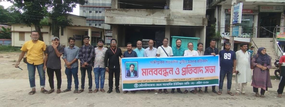 গাজীপুর সাংবাদিক তুহিন হত্যার প্রতিবাদে মৌলভীবাজারে সাংবাদিক ইউনিয়নের প্রতিবাদ সভা