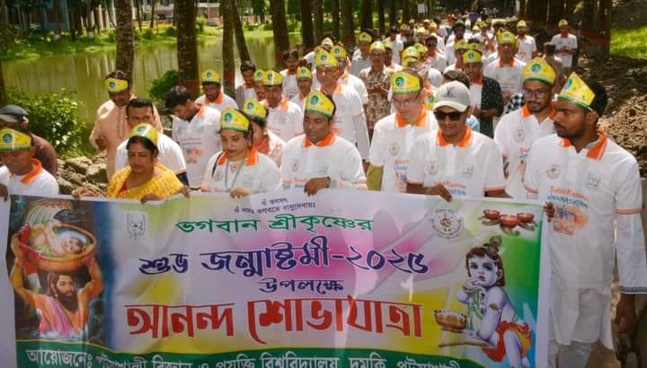 পটুয়াখালী ভার্সিটিতে শ্রী কৃষ্ণের জন্মাষ্টমী উপলক্ষে শোভাযাত্রা।