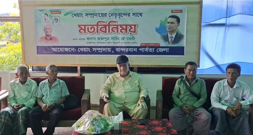 খেয়াং সম্প্রদায়ের নেতৃবৃন্দের সাথে মতবিনিময় করেন, রাজপুত্র সাচিং প্রু জেরী।