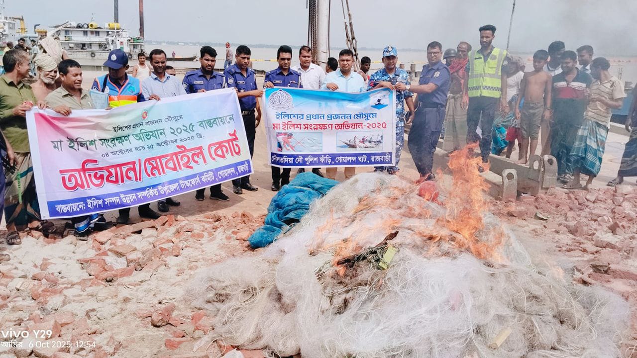 রাজবাড়ী জেলা মৎস্য কর্মকর্তা মাহবুব উল হক বলেন, ২২ দিন জেলেরা কোনোভাবেই নদীতে নামতে পারবে না। জেলা ও উপজেলা প্রশাসনের পাশাপাশি মৎস্য বিভাগও নিয়মিত নজরদারি করছে। আমাদের এ অভিযানে নৌ পুলিশ ও কোস্ট গার্ড সহযোগিতা করছে। ইলিশের প্রধান প্রজনন মৌসুমে সারাদেশে ইলিশ ধরা, পরিবহন, মজুদ ও বিক্রি নিষিদ্ধ থাকলেও কিছু জেলে নিষেধাজ্ঞা অমান্য করে নদীতে নামছেন। এ অবস্থায় উপজেলা প্রশাসন ও মৎস্য বিভাগ যৌথভাবে অভিযান চালায়। জব্দ করা জাল পুড়িয়ে ধ্বংস করা হয় এবং উদ্ধার করা ইলিশ স্থানীয় একটি মাদ্রাসায় বিতরণ করা হয়।