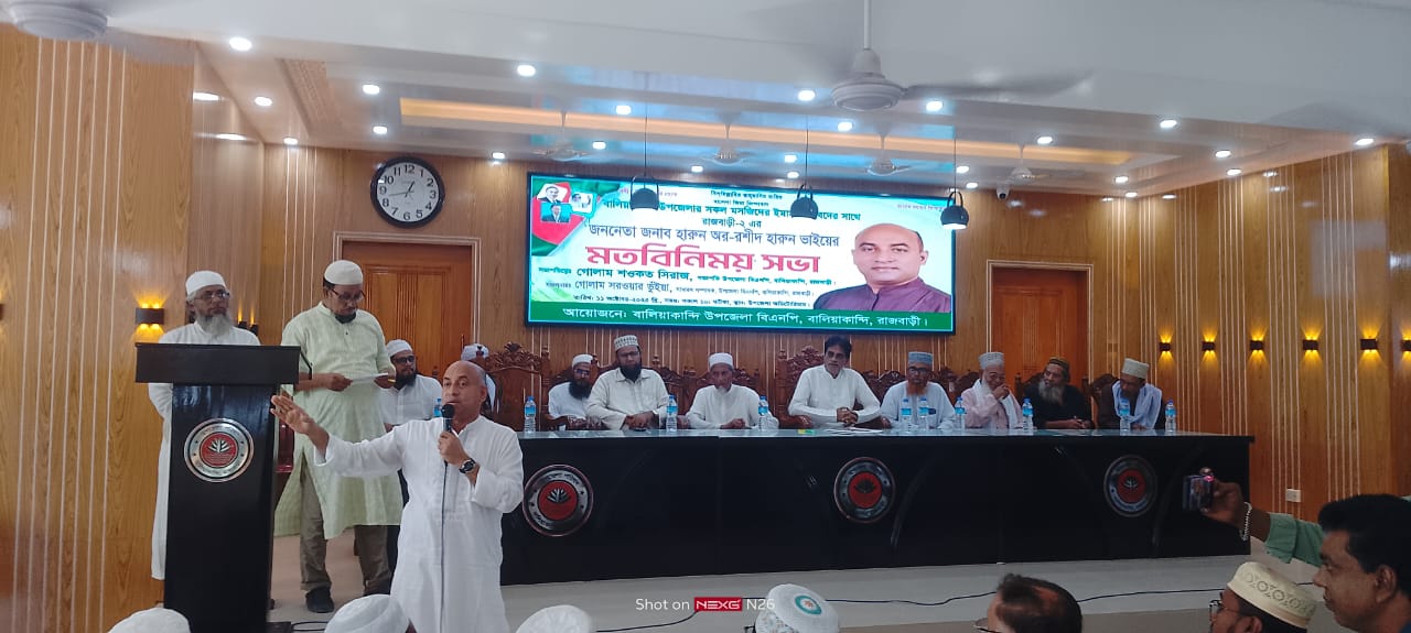 রাজবাড়ী জেলার বালিয়াকান্দি উপজেলার সকল মসজিদের ইমাম সাহেবদের সাথে রাজবাড়ী -২ আসনের ধানের শীষের মনোনয়ন প্রতাশী ও সংসদ সদস্য পদপ্রার্থী মোঃ হারুন অর রশীদ হারুনের মতবিনিময় সভা অনুষ্ঠিত হয়েছে।