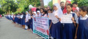 ঈশ্বরদীতে শিশু শিক্ষার্থী বলাৎকারকারীকে গ্রেফতারের দাবীতে শিক্ষার্থীদের মানববন্ধন।