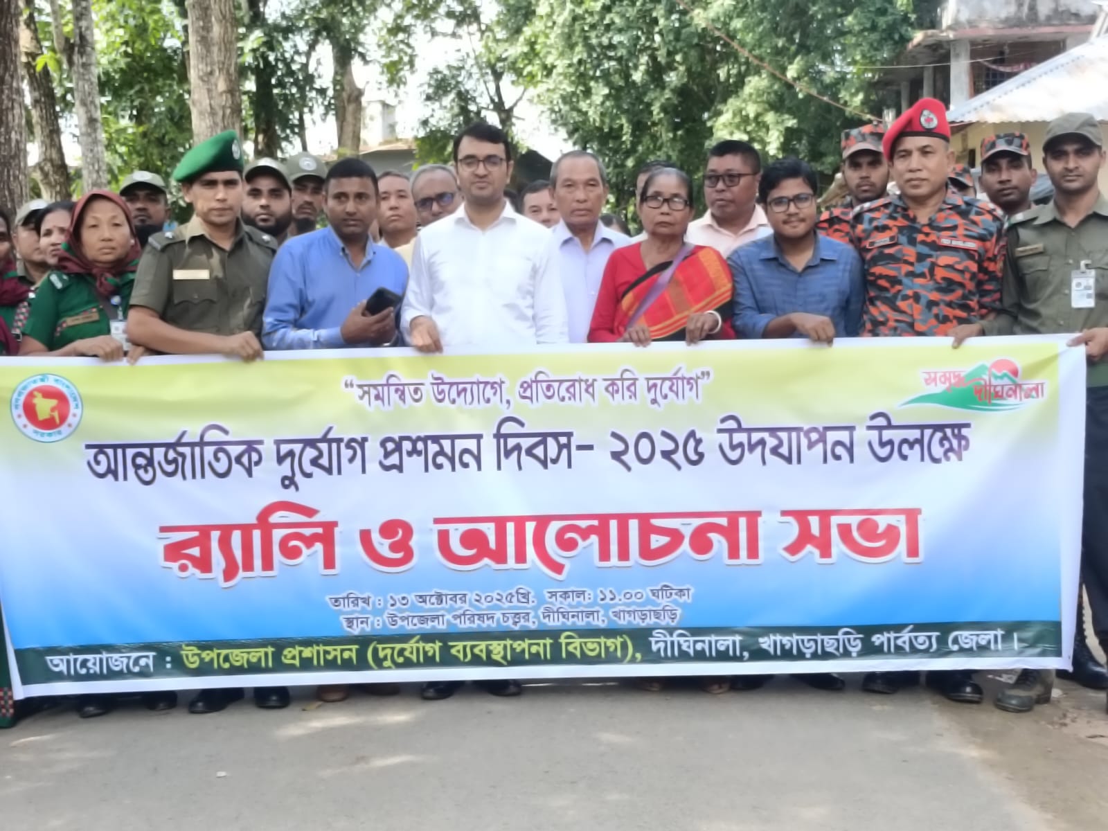 “সমন্বিত উদ্যোগে, প্রতিরোধ করি দুর্যোগ”— এই প্রতিপাদ্যকে সামনে রেখে খাগড়াছড়ির দীঘিনালায় আন্তর্জাতিক দুর্যোগ প্রশমন দিবস-২০২৫ উদযাপন উপলক্ষে র্যালি ও আলোচনা সভা অনুষ্ঠিত হয়েছে।