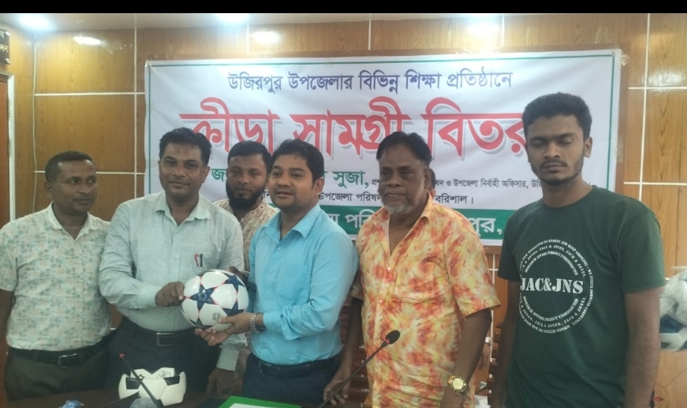 উজিরপুরে মাদক ও মোবাইল আসক্তি থেকে শিক্ষার্থীদের দূরে রাখতে ক্রীড়া সামগ্রী বিতরণ।