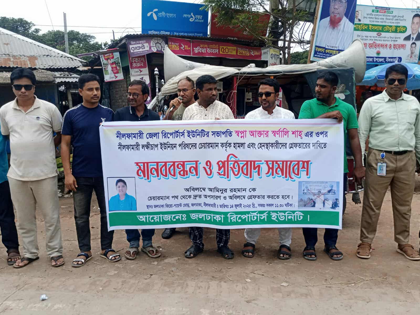 সাংবাদিক স্বপ্নার উপর হামলার প্রতিবাদে জলঢাকায় মানববন্ধন ও প্রতিবাদ সমাবেশ