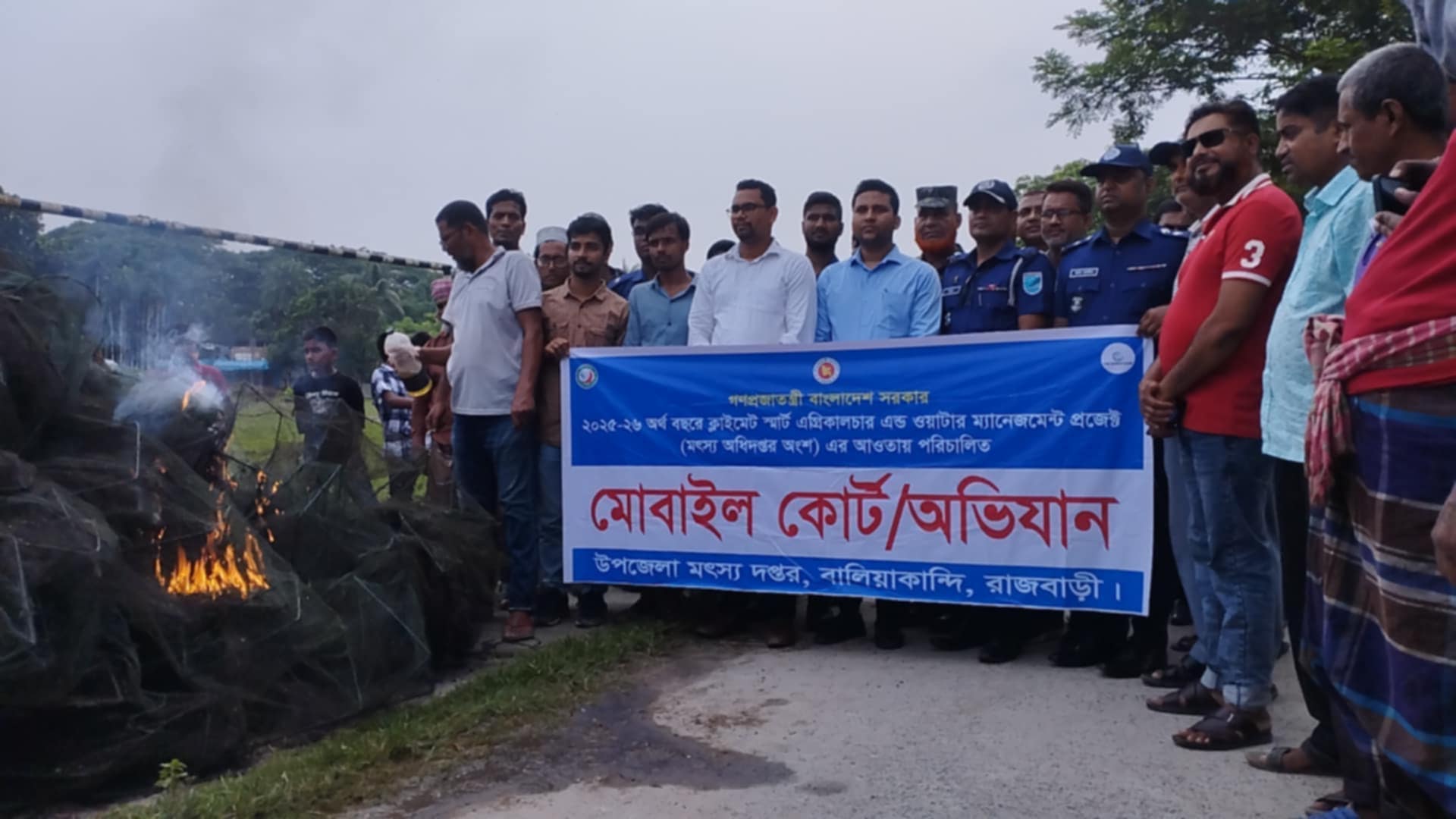 বালিয়াকান্দিতে ১০ লক্ষাধিক টাকার নিষিদ্ধ ঘোষিত চায়না দোয়ারী জাল উদ্ধার ও আগুনে পুড়িয়ে ধ্বংস। মোঃ আমিরুল হক, রাজবাড়ী :