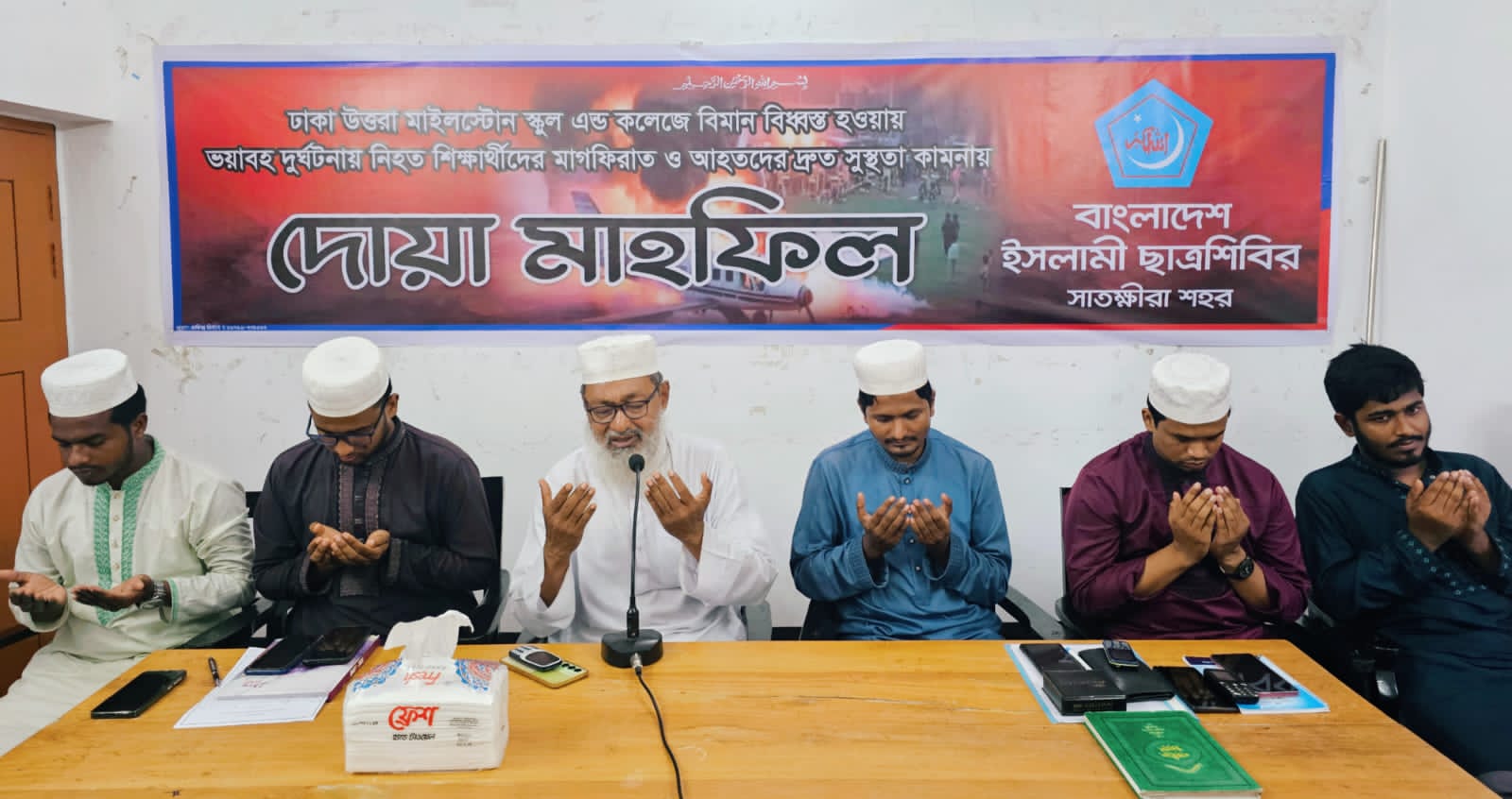 বিমান দুর্ঘটনায় নিহত শিক্ষার্থীদের মাগফেরাত এবং আহতদের সুস্থতা কামনায় সাতক্ষীরা শহর শিবিরের দোয়া-মাহফিল