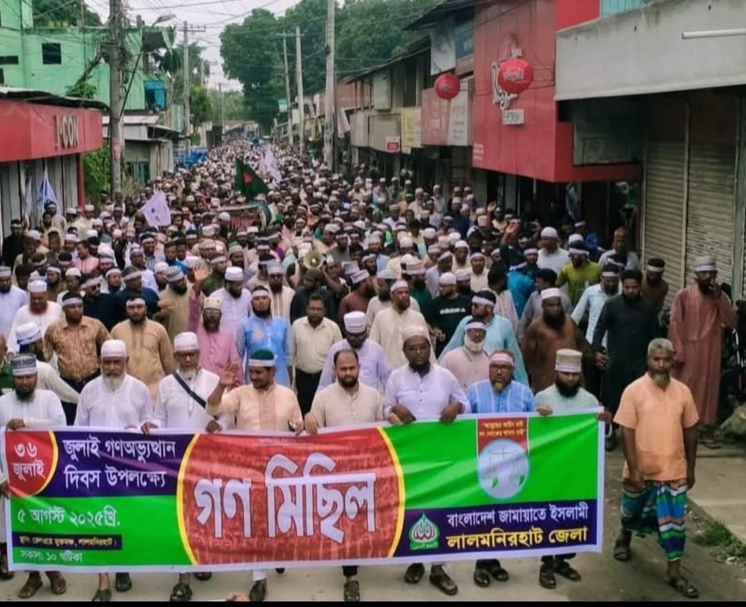 ৩৬ জুলাই উপলক্ষে লালমনিরহাটে জেলা জামায়াতের আয়োজনে গণমিছিল অনুষ্ঠিত। রবিউল ইসলাম বাবুল বিভাগীয় প্রতিনিধি রংপুরঃ ৩৬ জুলাই গণঅভ্যুত্থান দিবস উপলক্ষে