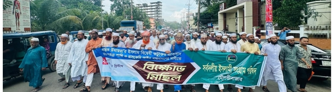 মৌলভীবাজারে নারী আইনজীবীর মুসলিম ধর্মের নবীজীর সাহাবিদের নিয়ে কটূক্তির প্রতিবাদে সমাবেশ ও বিক্ষোভ মিছিল