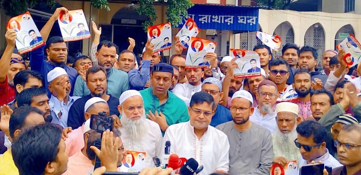 মিথ্যা মামলায় গ্রেফতার বনি আমিনের নিঃশর্ত মুক্তির দাবিতে মানববন্ধন ও বিক্ষোভ মিছিল।