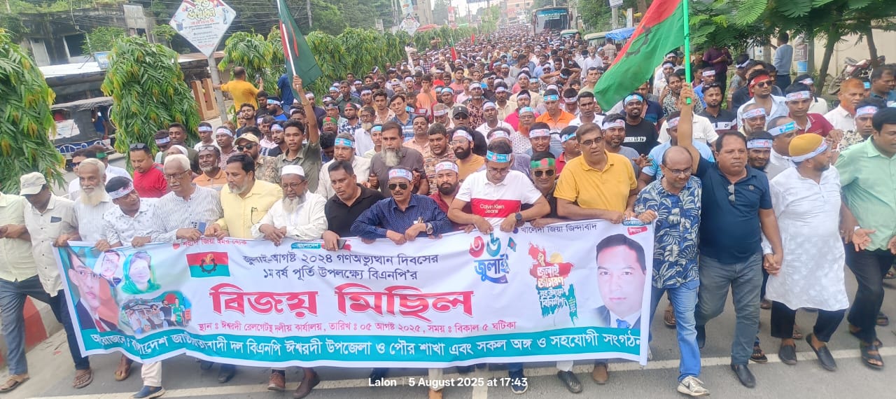 ছাত্রজনতার গণঅভ্যুত্থানের বর্ষপূর্তিতে ঈশ্বরদীতে জাকারিয়া পিন্টুর নেতৃত্বে বিএনপি’র বিজয় র্যালি । ছাত্র-জনতার ঐতিহাসিক গণঅভ্যুত্থানের বর্ষপূর্তি উপলক্ষে ঈশ্বরদীতে বিজয় র্যালি ও