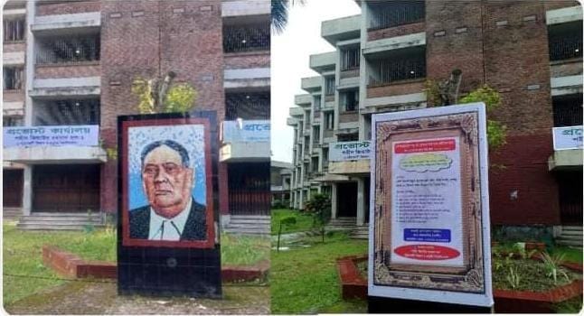 পটুয়াখালী ভার্সিটিতে, শেরে বাংলার ম্যুরালে নার্সারি বিজ্ঞাপন, জাতীয় নেতার মর্যাদাহানিতে ছাত্রদলের তীব্র প্রতিবাদ। দুমকি ও পবিপ্রবি (পটুয়াখালী) প্রতিনিধি:-জাকির হোসেন হাওলাদার।।