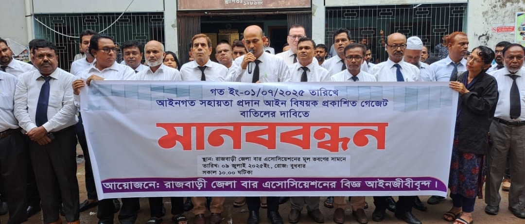 গেজেট বাতিলের দাবীতে মানববন্ধন মোঃ আমিরুল হক, রাজবাড়ী প্রতিনিধি ॥ আইনগত সহায়তা প্রদান আইন বিষয়ক প্রকাশিত গেজেট বাতিলের দাবীতে মানববন্ধন