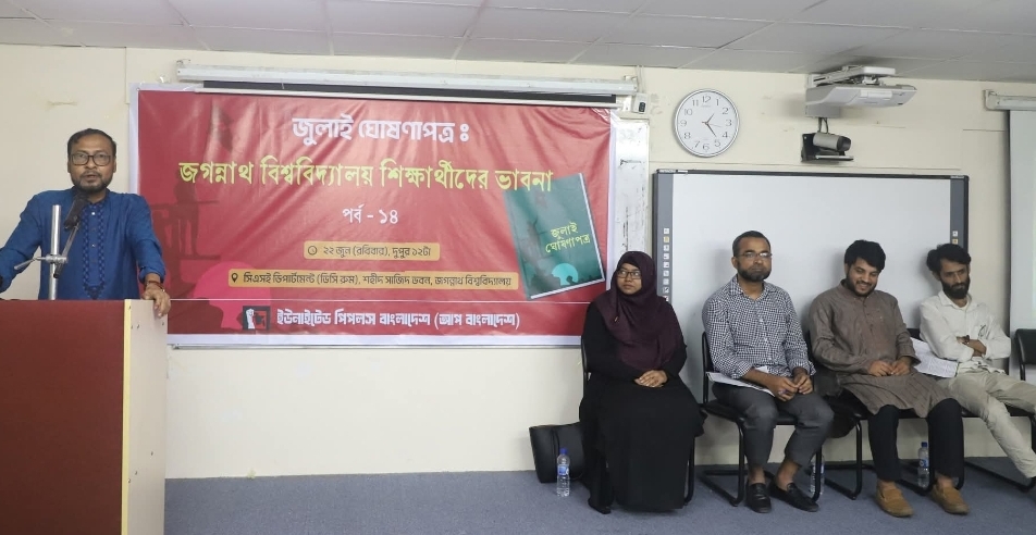 জুলাই ঘোষণাপত্র নিয়ে জবির শিক্ষার্থীদের ভাবনা নিয়ে আলোচনা অনুষ্ঠিত