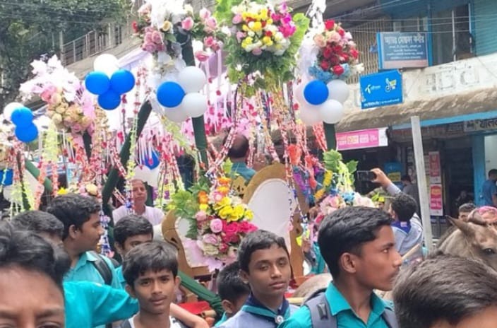 রাজবাড়ীতে দুই শিক্ষককে ঘোড়ার গাড়িতে বসিয়ে রাজকীয় বিদায়